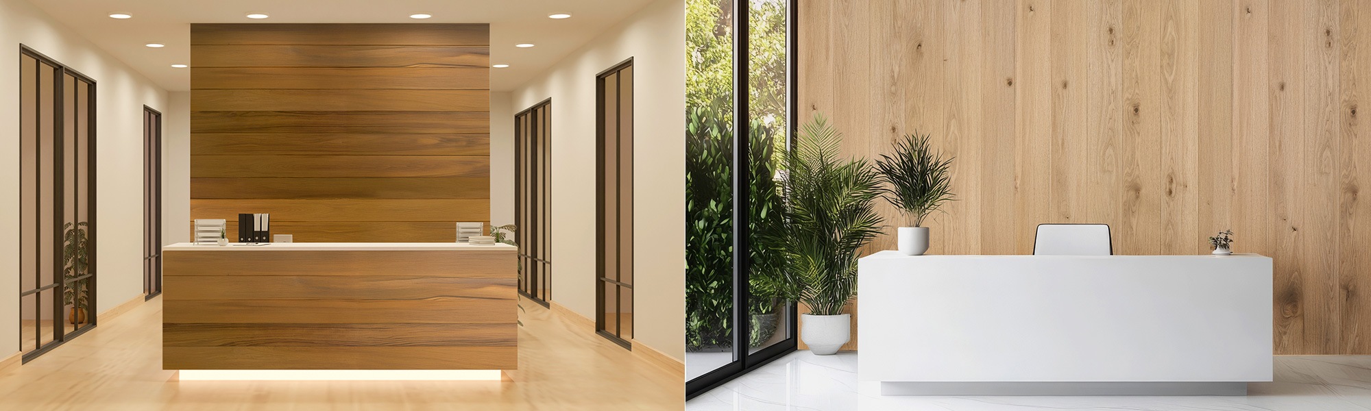 同じツキ板を非不燃の合板に張り付けたパネルもご用意しております。設計指定箇所によって使い分けることでコスト面にも貢献し、見た目も不燃箇所と非不燃の部分をシームレスに仕上げることが可能です。