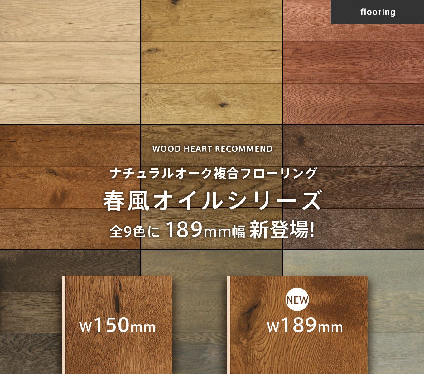 WoodHeart Mail News 春風オイルに189mm幅新登場!シックなカラーリングで発売以来大変、ご好評いただいておりますナチュラル