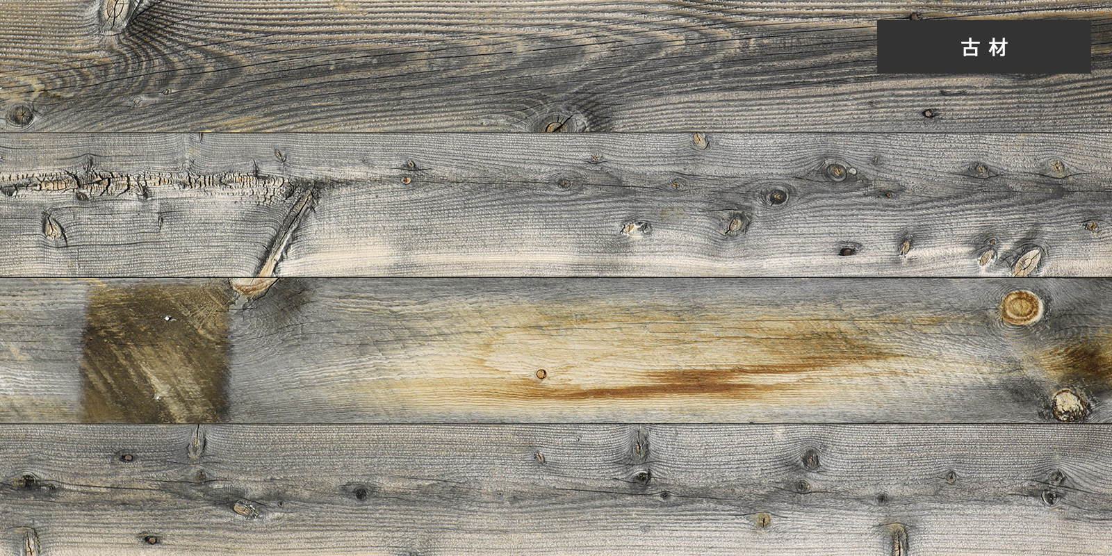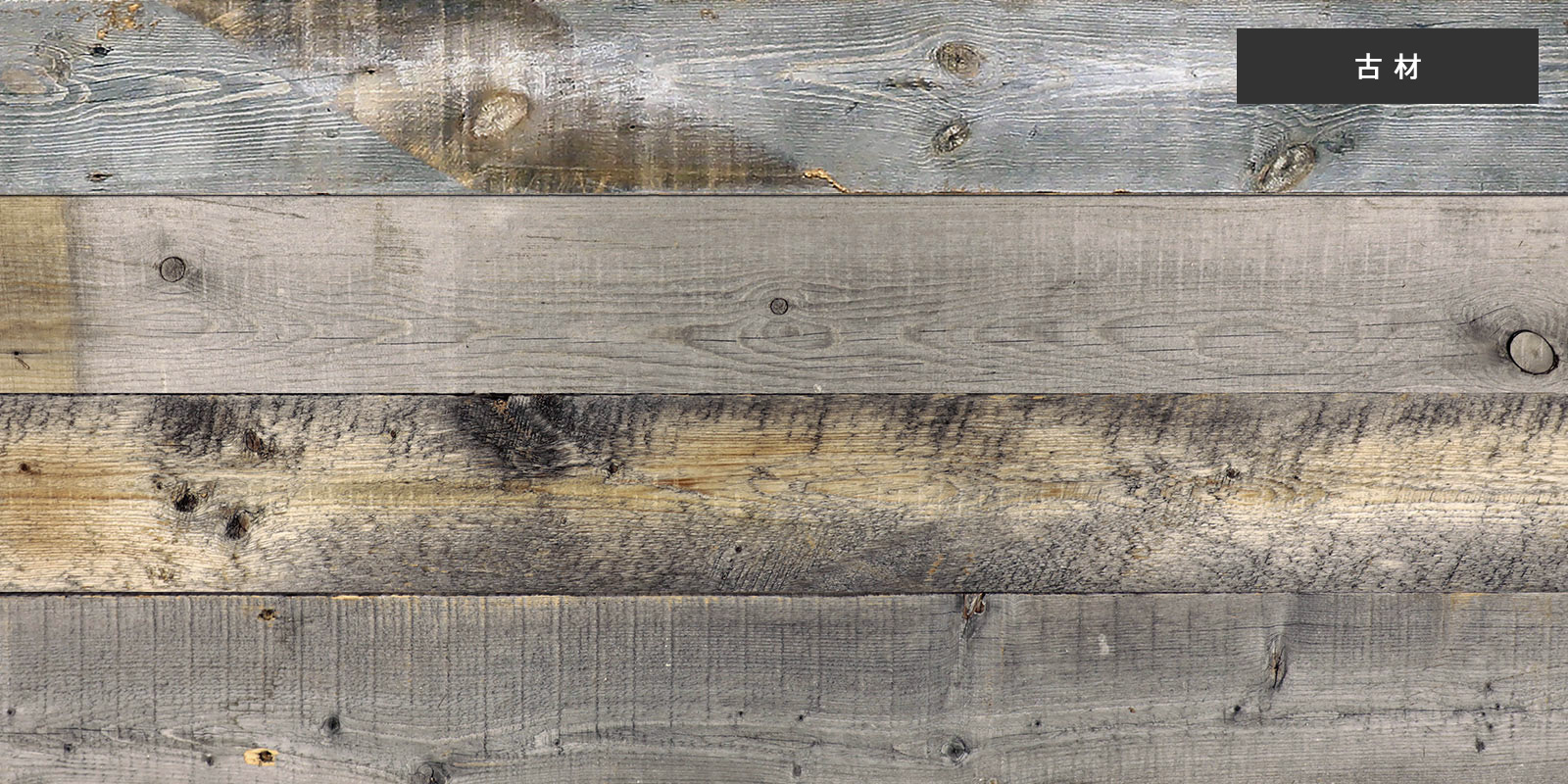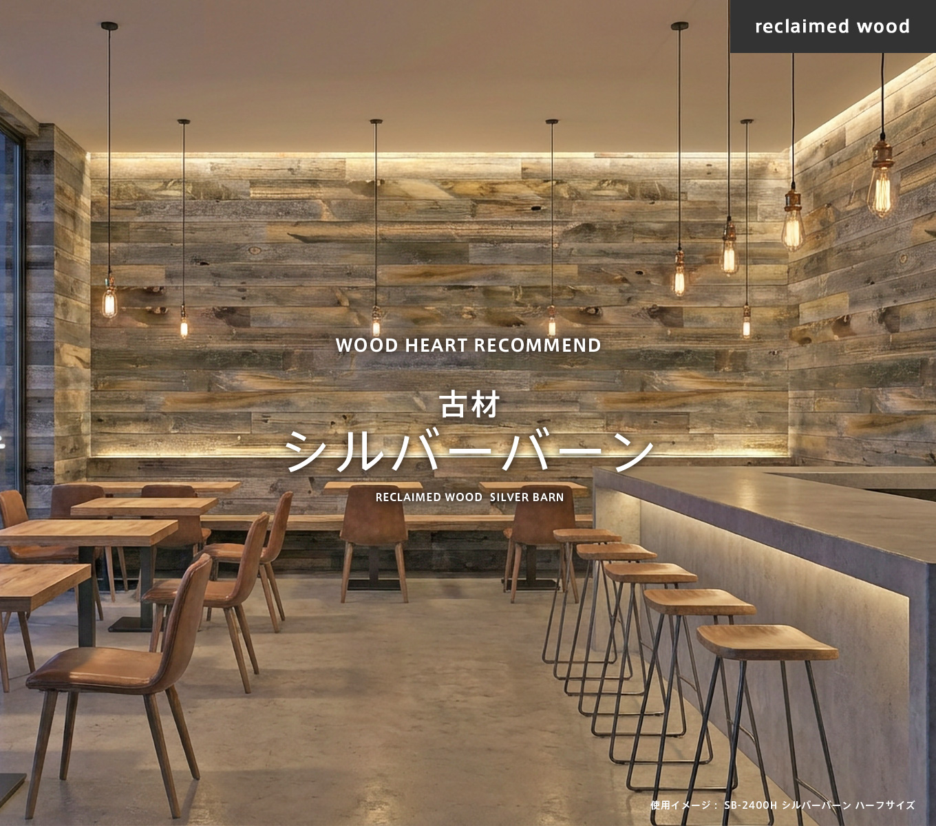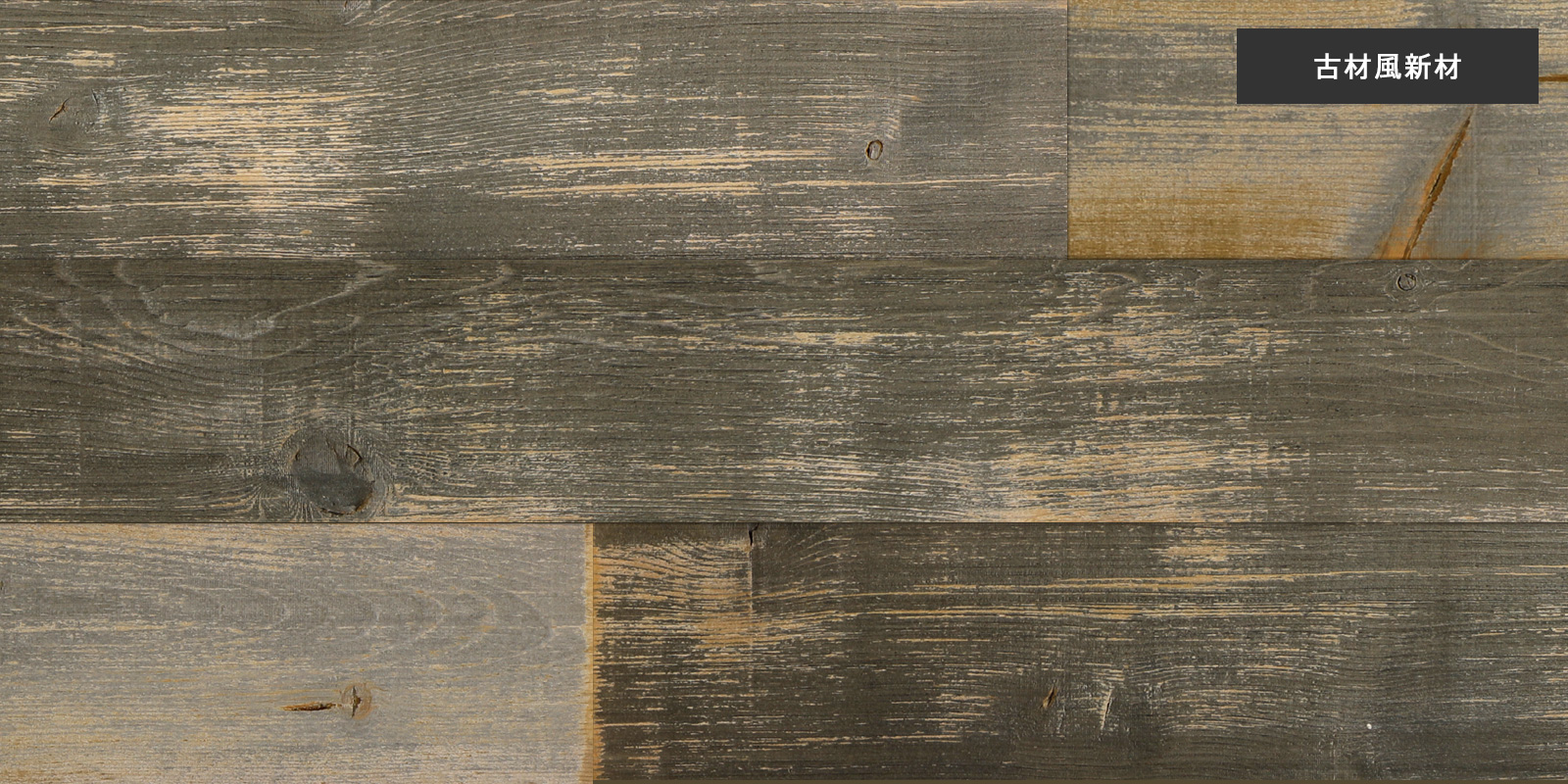 弊社の代名詞的な古材シルバーバーン。 ワイルドで、個性は強め。ハマる所に ハマればスタイリッシュで唯一無二の 存在感です。無料のカットサンプルで ぜひ手に取ってお確かめください。